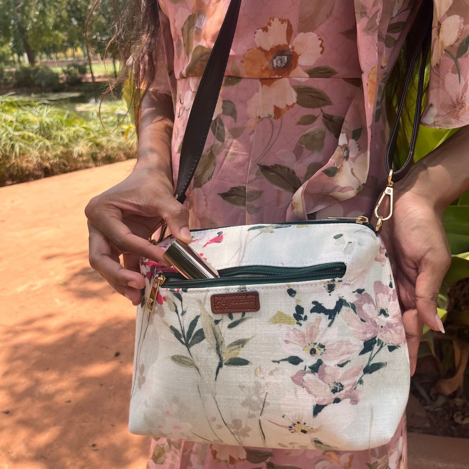 Bagaan Sling Bag is a handcrafted floral sling bag inspired by nature,featuring delicate embroidery on premium printed cotton fabric.Compact,elegant and perfect for everyday outings and festive occasions.