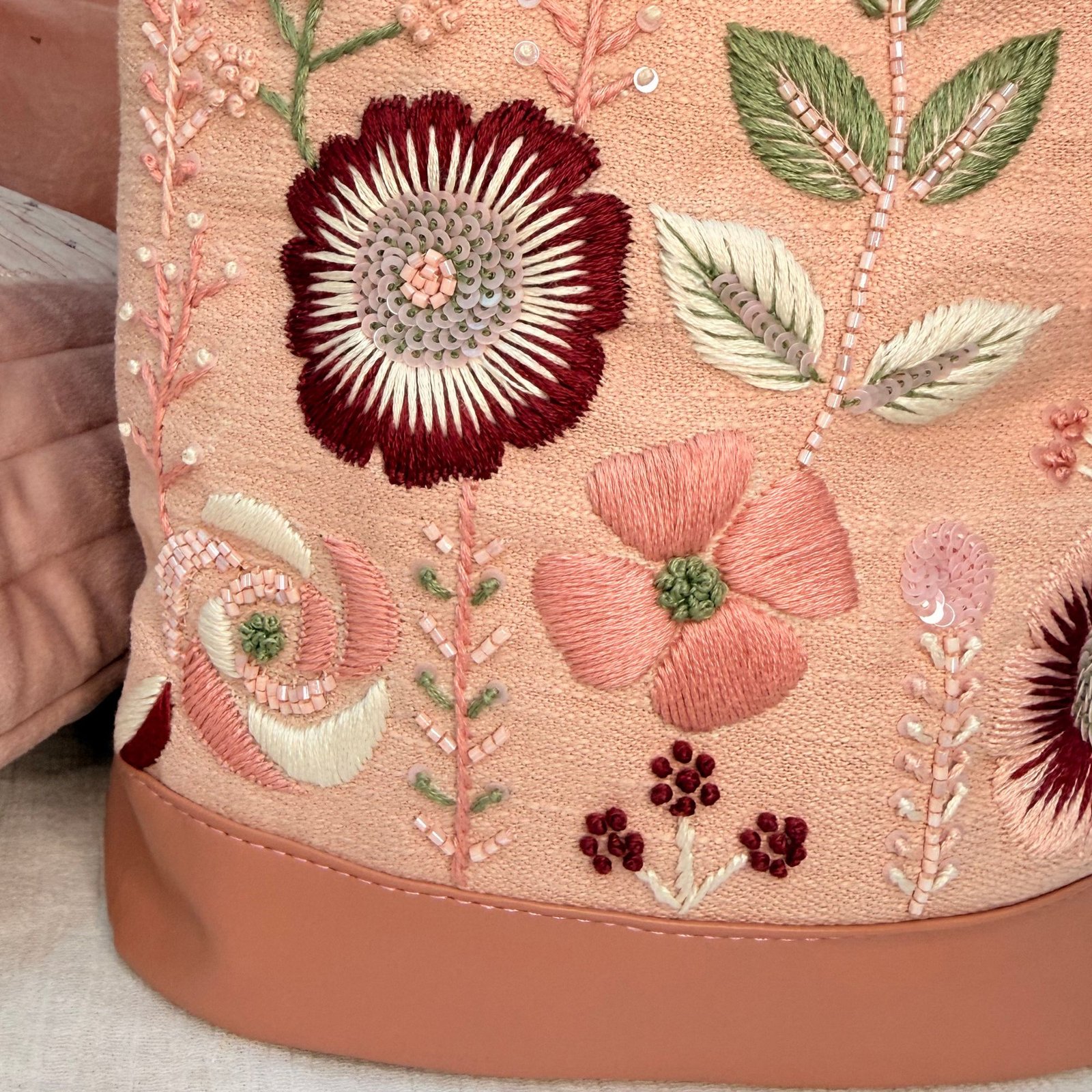 A softer, more romantic take on our signature bucket bag, this blush pink potli is handcrafted on a premium fabric base and customised specially as per your order. Detailed with fine hand embroidery and subtle shimmering accents, it carries the same structured elegance of our bucket silhouette, now reimagined in a dreamy pink tone that feels feminine, festive, and effortlessly classy.