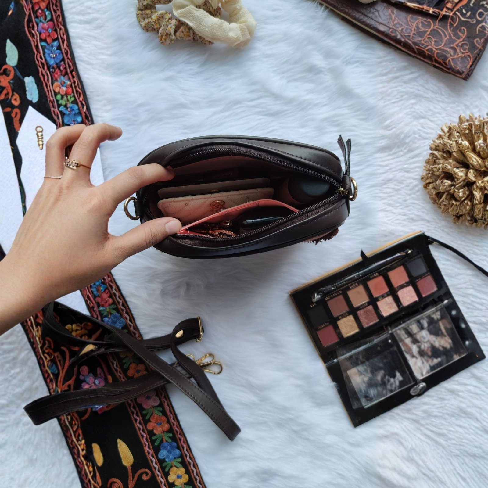 This crossbody sling is ideal for travel, casual outings, brunches and everyday moments, this bag beautifully blends modern comfort with traditional Indian craftsmanship.Lightweight, compact and perfectly sized for your phone, cards, keys, and small essentials.