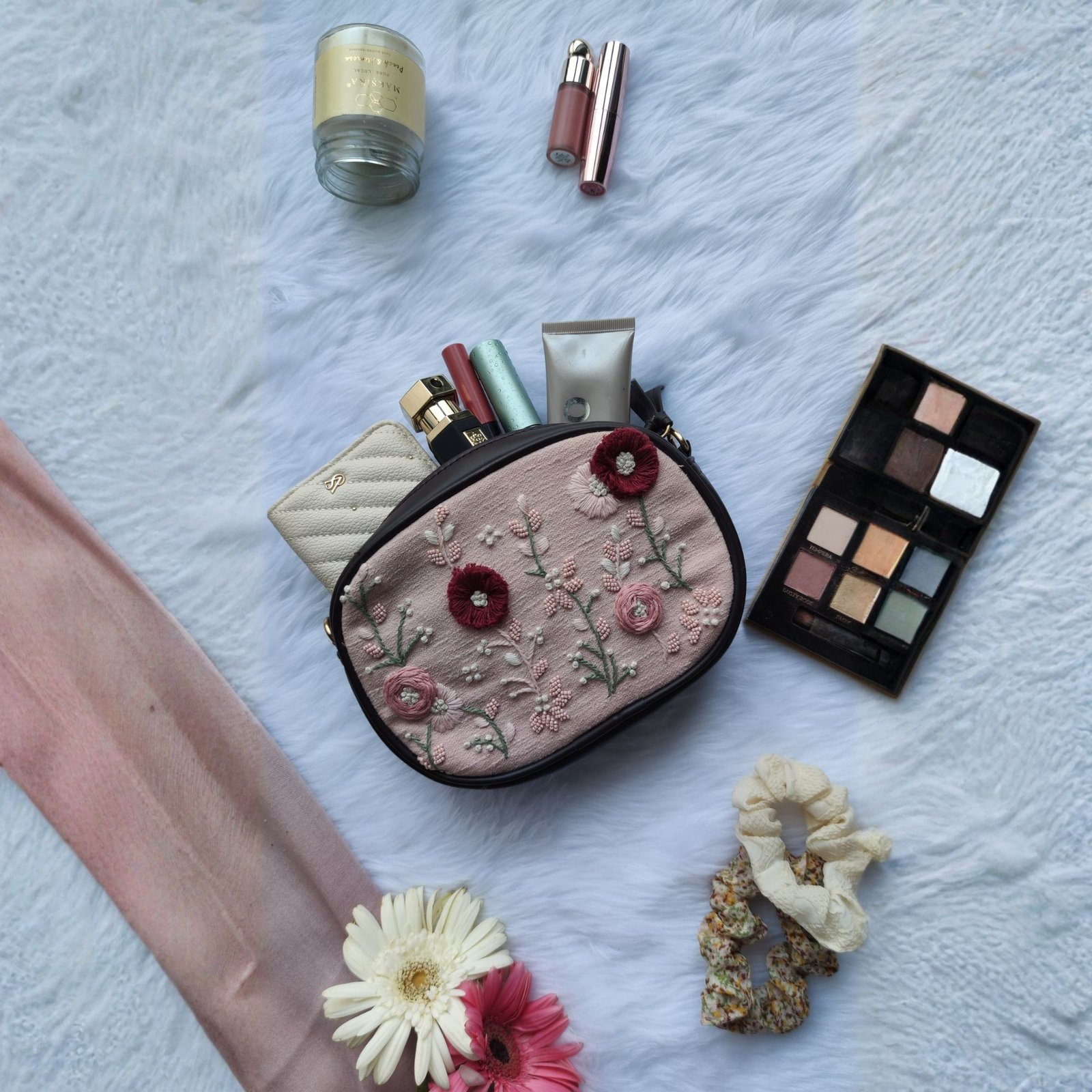 The Wild Birdie Fanny Bag is a charming handcrafted piece designed for effortless,hands-free styling with a soft touch of elegance. Made in a delicate blush base, it features intricate 3D hand embroidery in subtle tones inspired by nature, giving the bag a playful yet refined look for girls who loves carrying pastels hues.