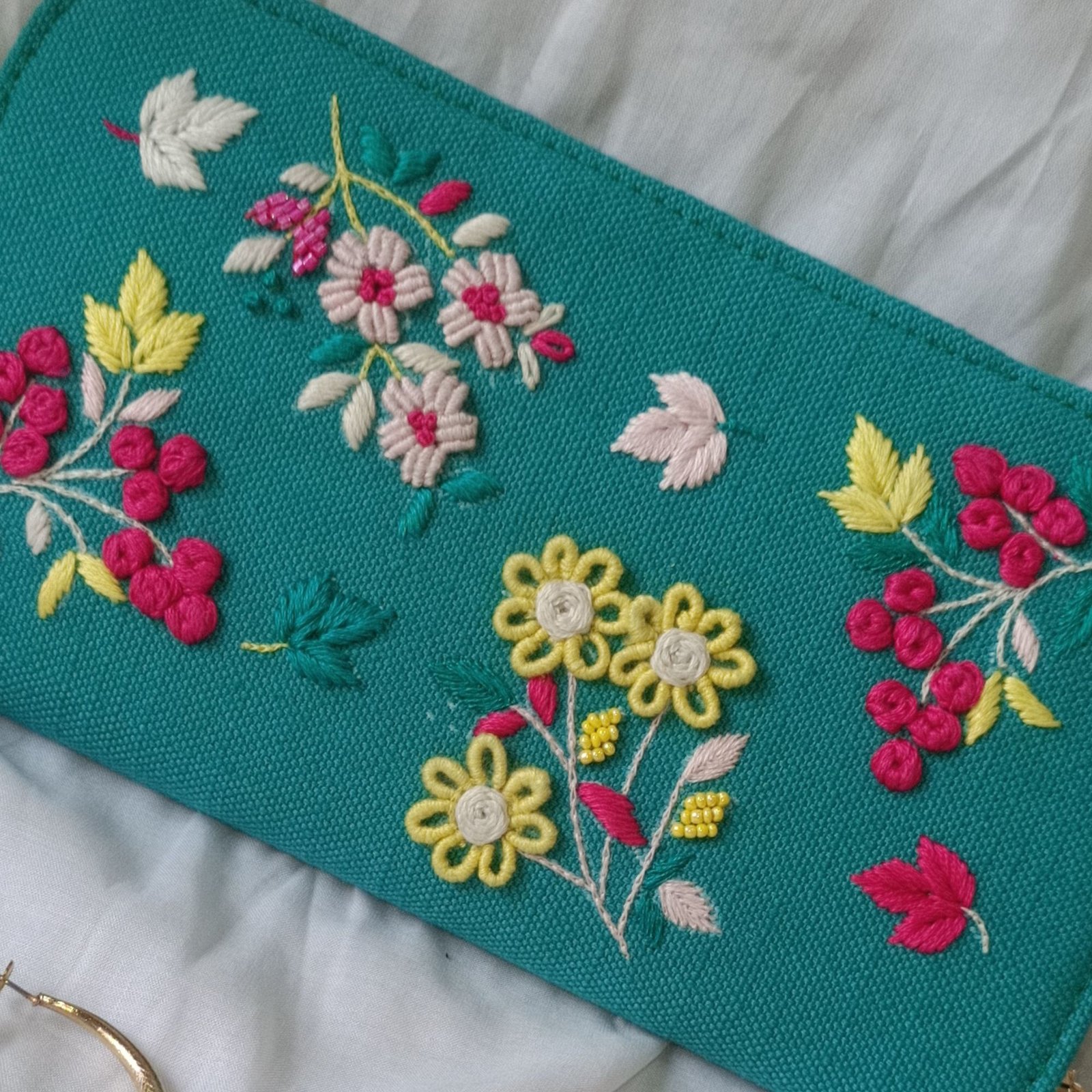 Inspired by blooming wildflowers, the Wild Flower Wallet is a beautifully handcrafted accessory designed to add color and charm to your everyday essentials. Made from premium fabric, this wallet features intricate multicolor floral embroidery that reflects skilled craftsmanship and artistic detailing.